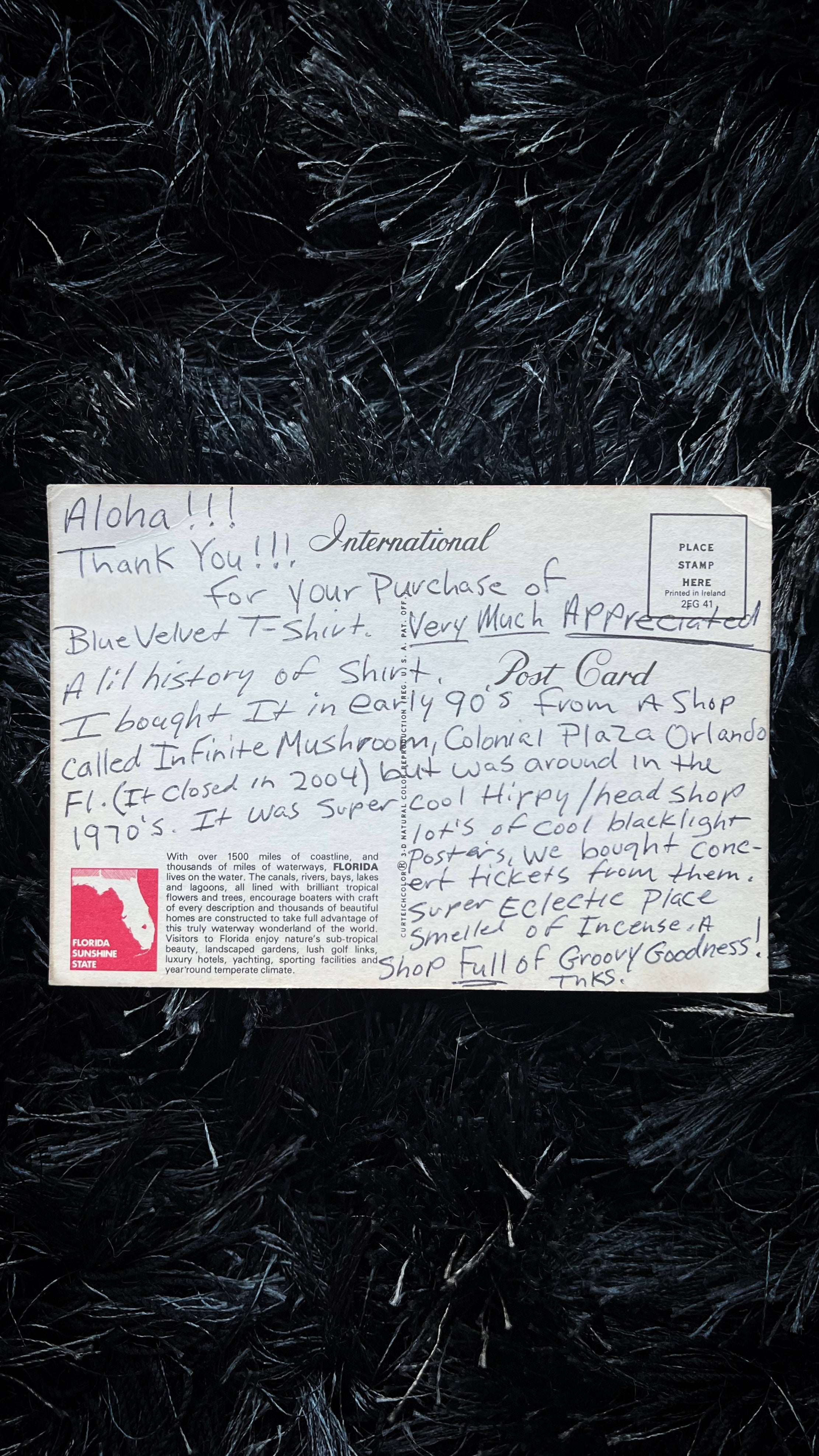 NEAR DEADSTOCK CONDITION WITH ONLY MINIMAL GRAPHIC CRACKING & ZERO FLAWS. THIS CAME FROM THE ORIGINAL OWNER WHO SENT ME A SENTIMENTAL POSTCARD EXPLAINING IT’S PROVENANCE (SEE LAST PHOTO). VERY HARD TO FIND IN AN XL. THIS IS THE EARLIEST PRINT OF THIS TEE. AMAZING MOVIE, ICONIC TEE. RIP DAVID LYNCH.